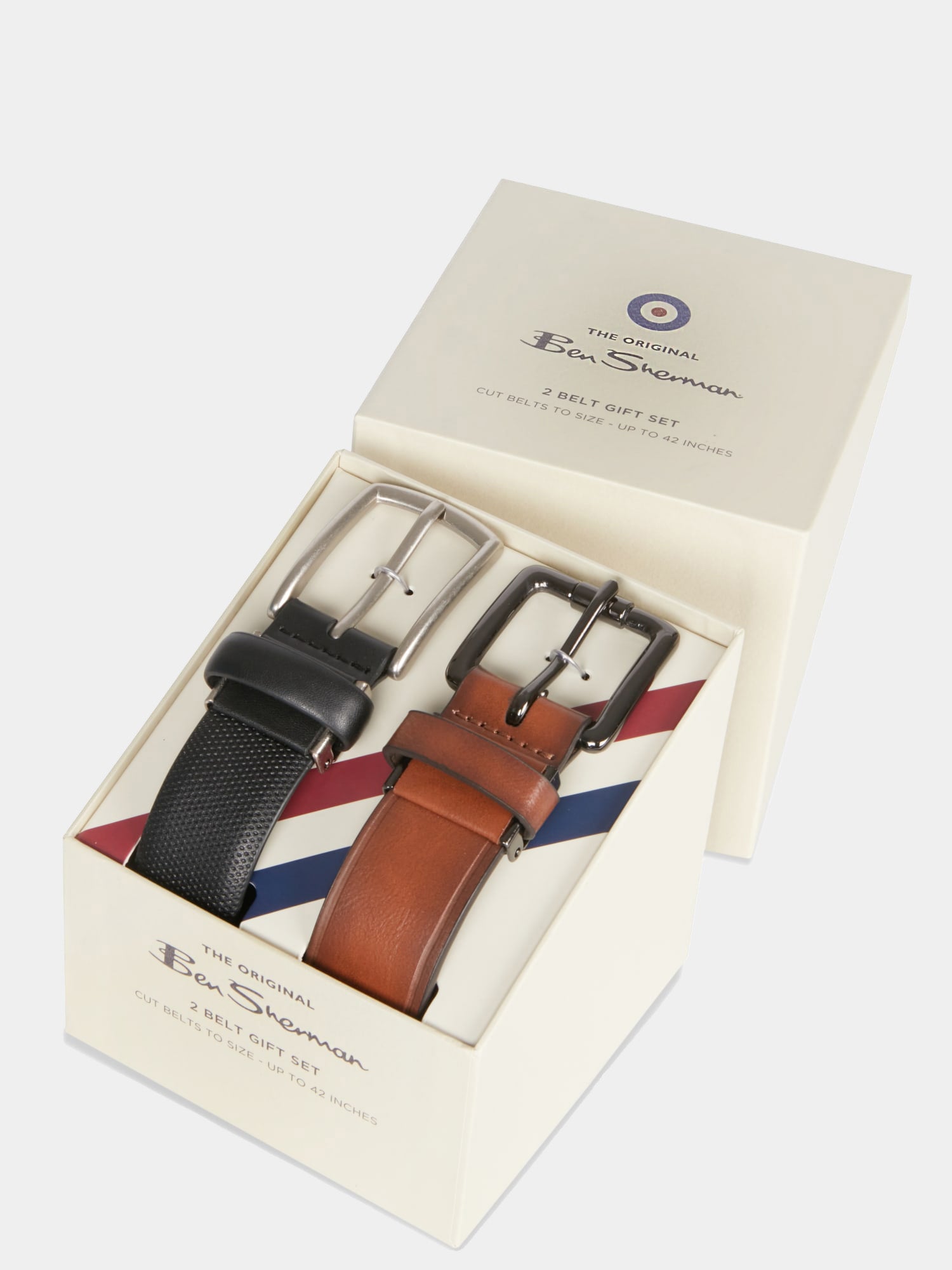 This Two Pin Buckle Belt Gift Set by Ben Sherman offers modern sartorial flair and identity.