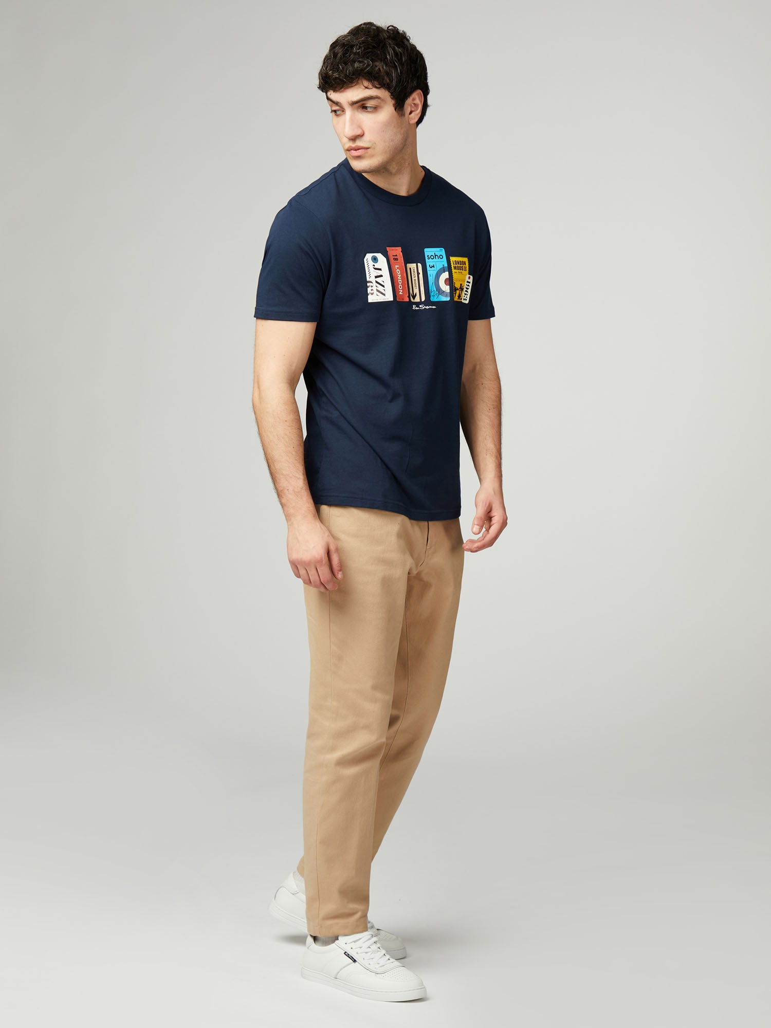100% organic cotton t-shirt. This regular features t-shirt features a tour tickets photographic print to the chest. This style is complete with a 'Ben Sherman' flag label.