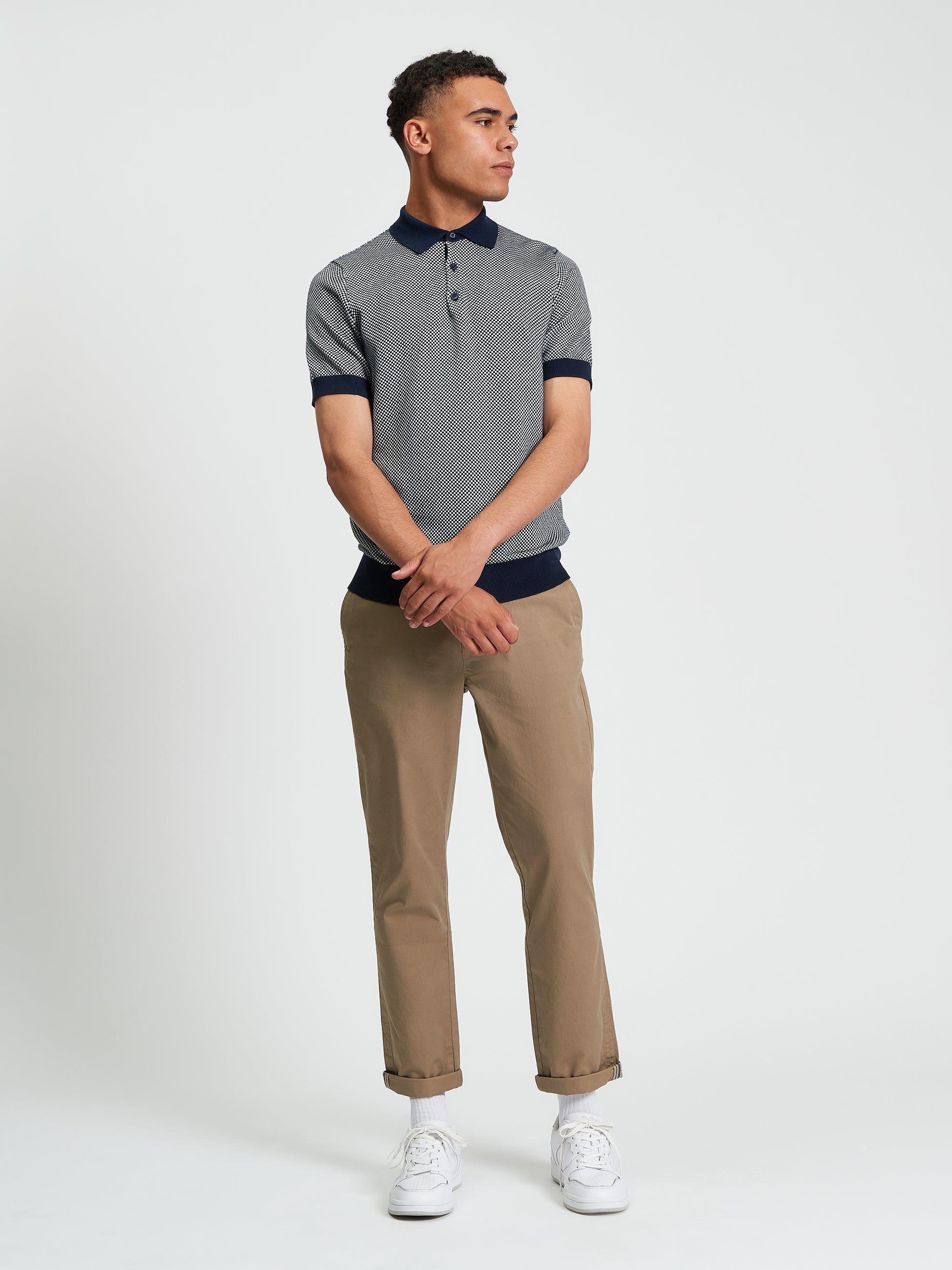 Made from 100% cotton, this regular-fit short sleeve knitted polo stands out with its bi-coloured textured design. The classic three-button placket adds versatility, while the Ben Sherman branded woven label on the side seam delivers a subtle signature finish. A refined take on a timeless staple.