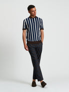 Crafted with a refined textured finish, this regular-fit short sleeve knitted polo features raised stripe detailing for a clean, elevated look. Contrast tipping adds a sharp edge, while the Ben Sherman branded woven label on the side seam provides an understated signature touch. A modern classic with timeless appeal.