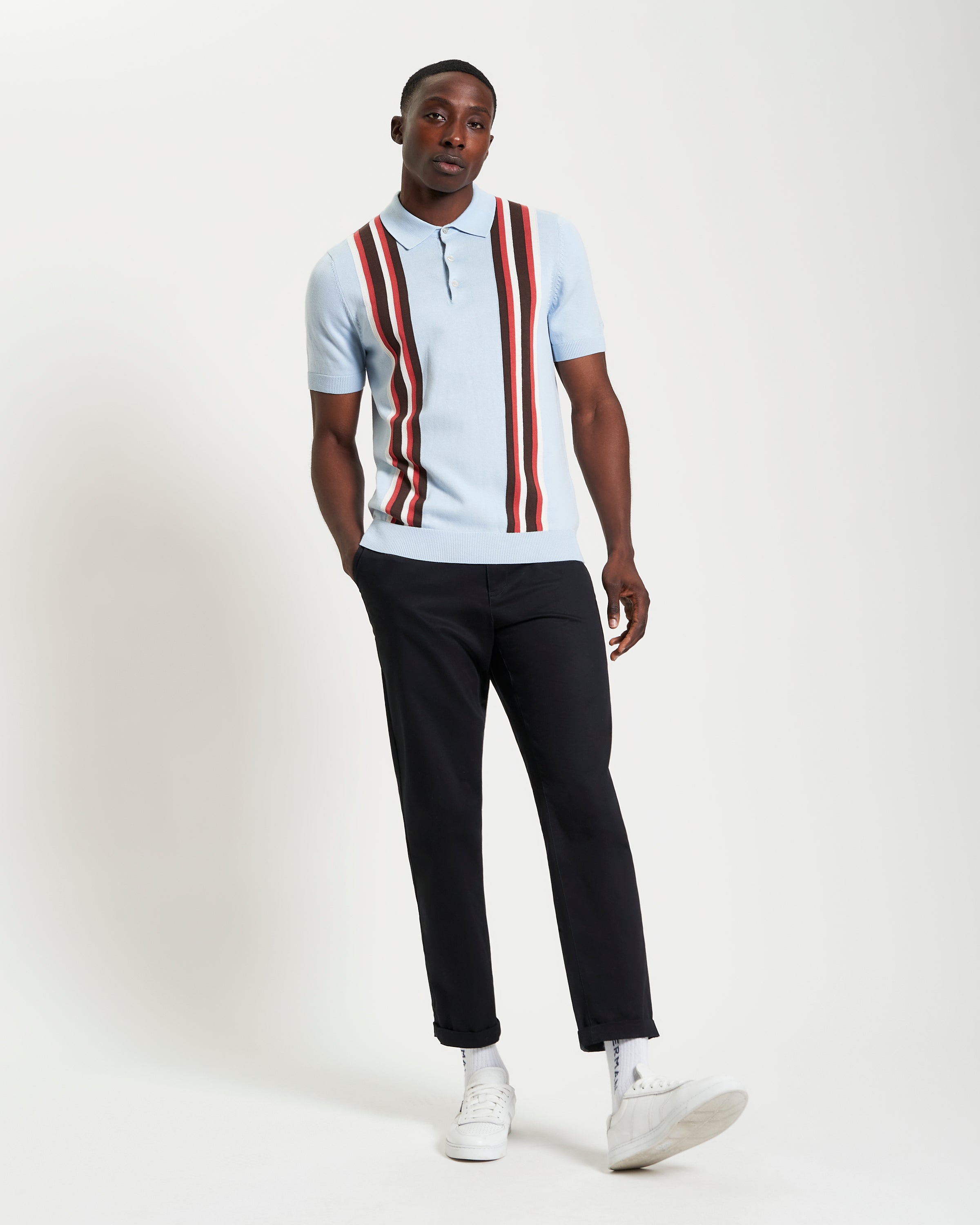 Elevate your staple collection with the Vertical Stripe Polo — a clean, confident knit that brings effortless style to your weekends. Crafted from 100% cotton in a regular fit, it features bold vertical stripes, a three-button placket, and subtle Ben Sherman embroidery on the left sleeve. Lightweight yet structured, it’s the perfect piece to pair with chinos or shorts, offering smart polish with laid-back ease.